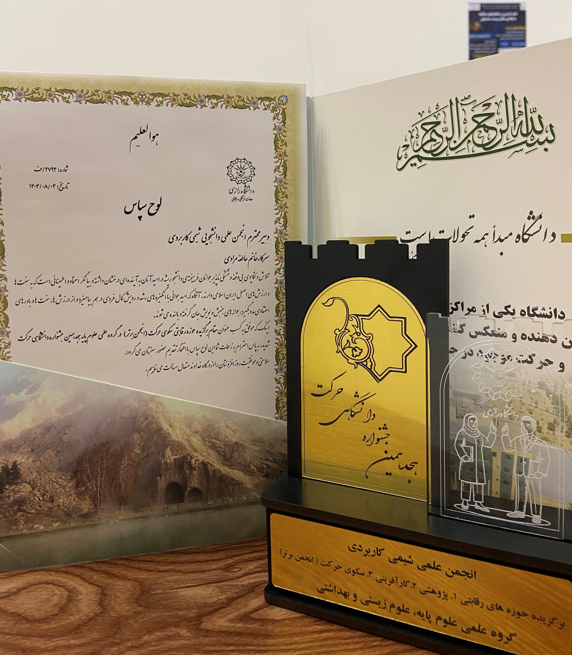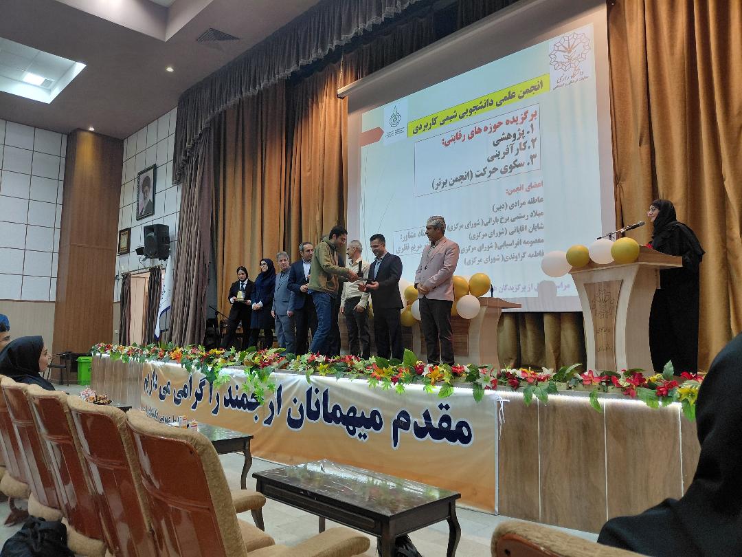در این مراسم، انجمن علمی-دانشجویی شیمی کاربردی دانشگاه رازی به دبیری سرکار خانم عاطفه مرادی و با راهنمایی استاد مشاور، سرکار خانم دکتر مریم نظری، درخشان ظاهر شد و موفق به کسب افتخارات زیر گردید :