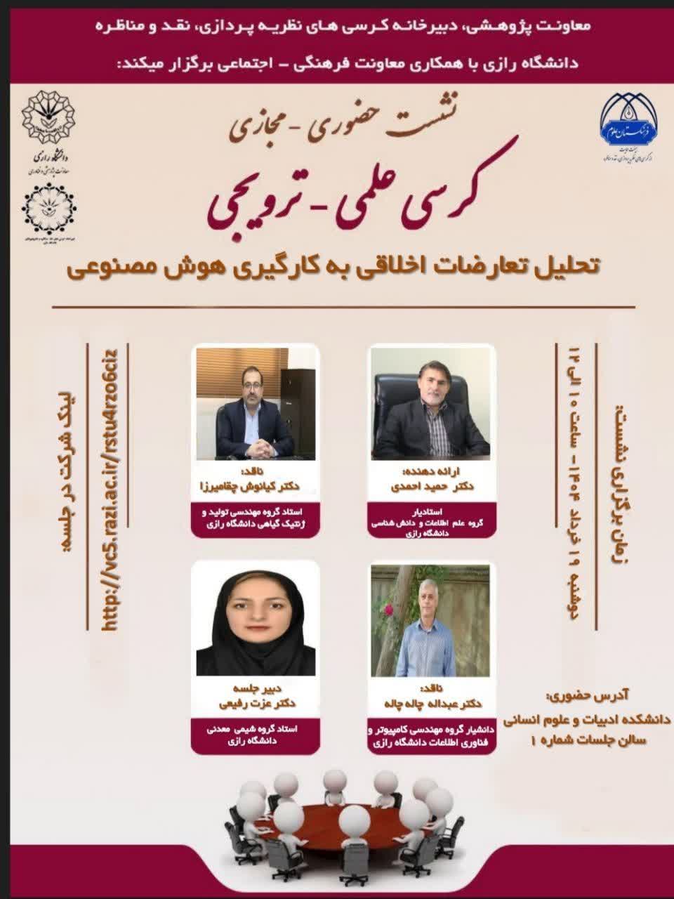نشست کرسی علمی- ترویجی با موضوع «تحلیل تعارضات اخلاقی به کار گیری هوش مصنوعی» - پرتال اصلی دانشگاه رازی